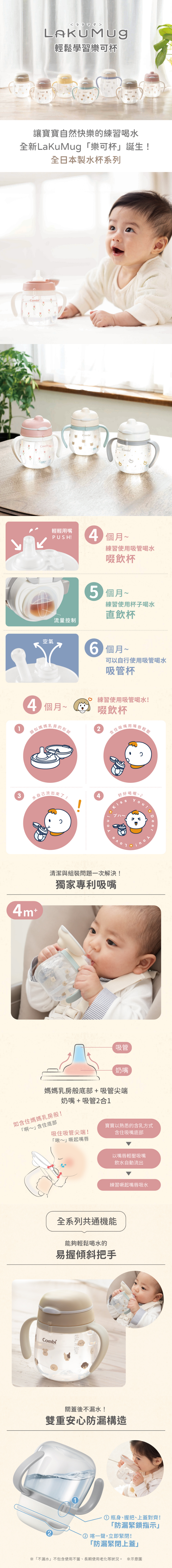 日本 Combi LakuMug 樂可杯第一階段啜飲杯240ml -多款可選