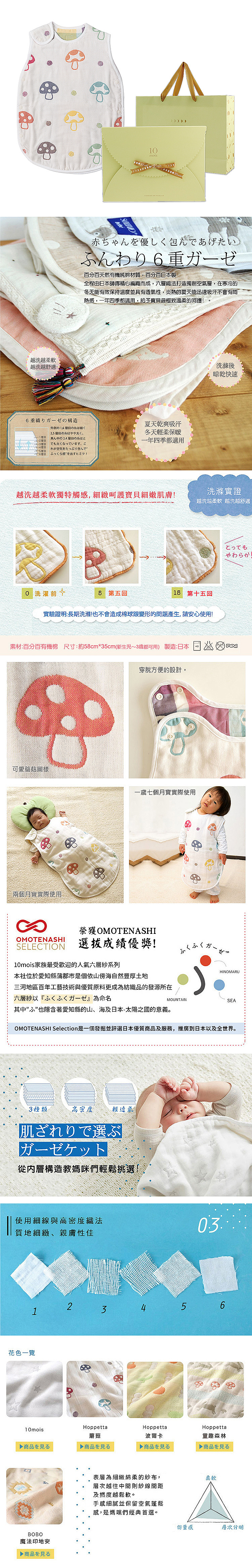 Hoppetta 六層紗 彩虹蘑菇六層紗防踢背心 禮盒組 (嬰童/幼童)