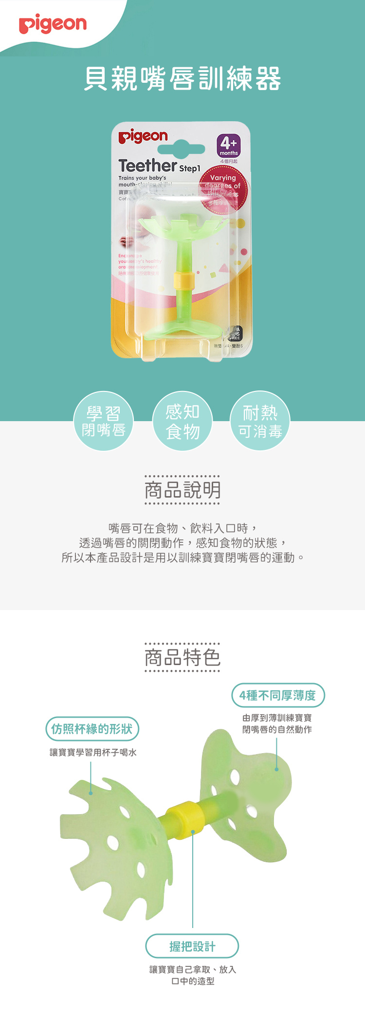 日本 Pigeon 貝親  嘴唇訓練器 綠色小花 4M+