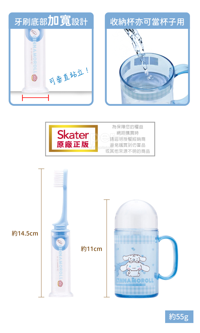 收納杯容量-約110ml使用牙刷時-約14.5公分 x 2.9公分