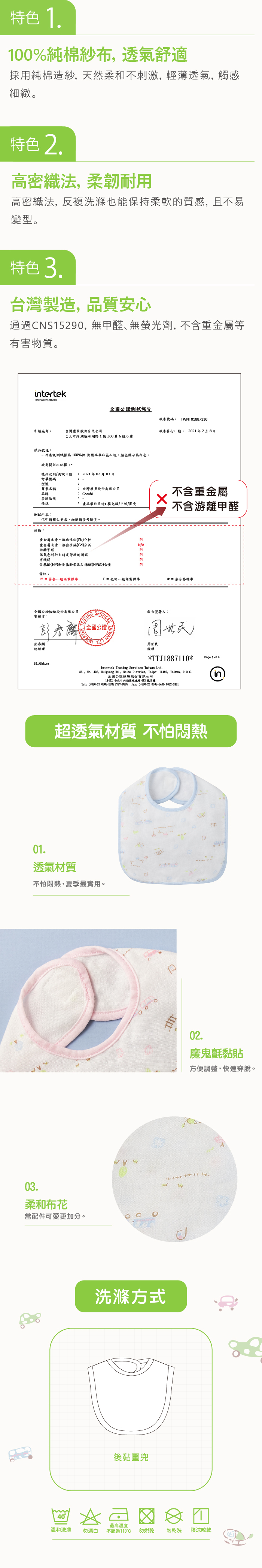 • 無甲醛、無螢光劑,不含重金屬等有害物質。