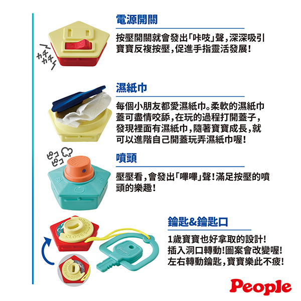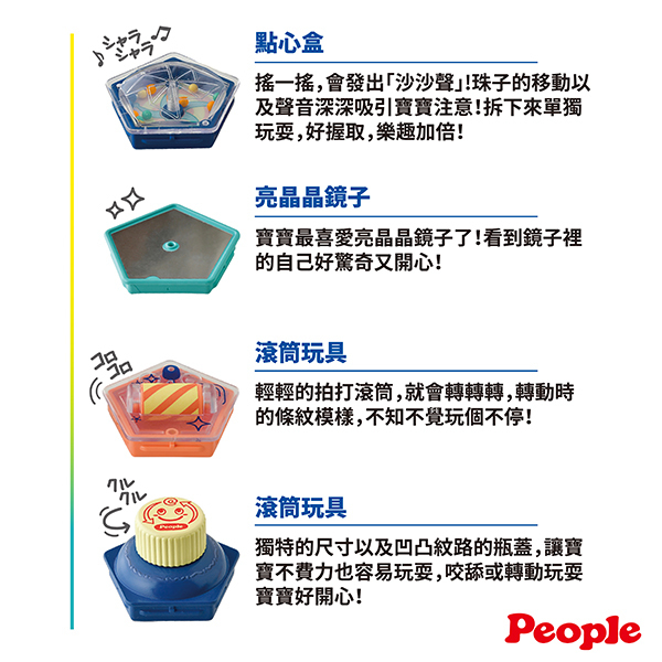 在摸索與玩樂中,大大滿足寶寶好奇心,同時促進手指靈活,充份刺激腦部發展!