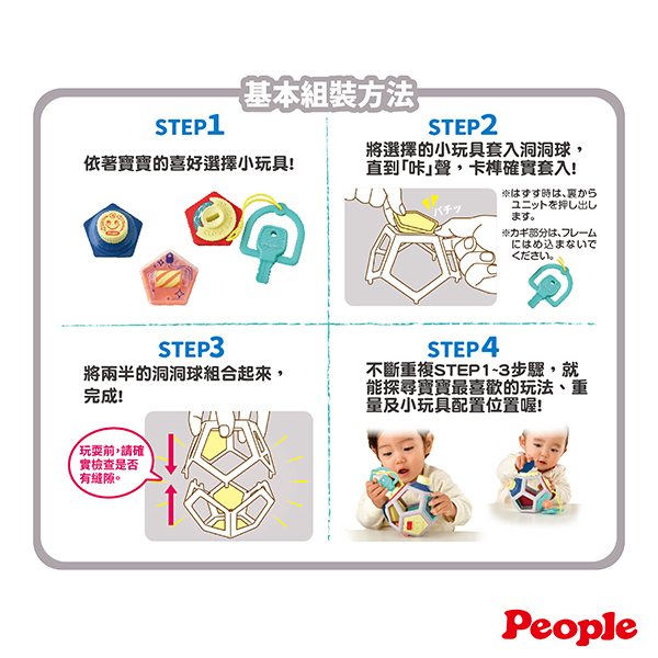 STEP3:將兩半的洞洞球組合起來,完成!※玩耍前,請確實檢查是否有縫隙。