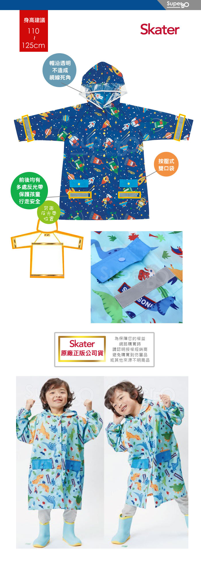 -前後均有多處反光帶,保護孩童行走安全。