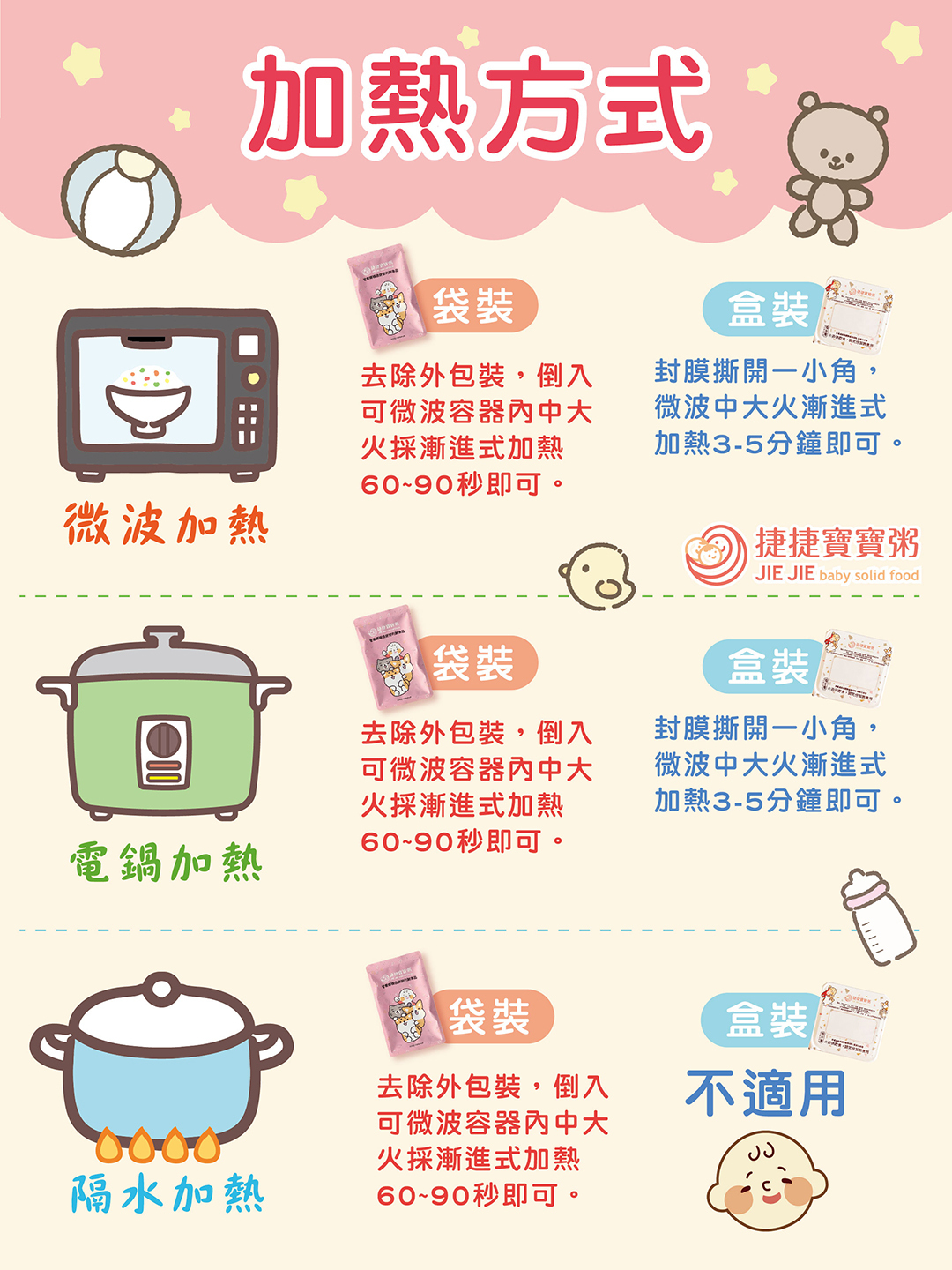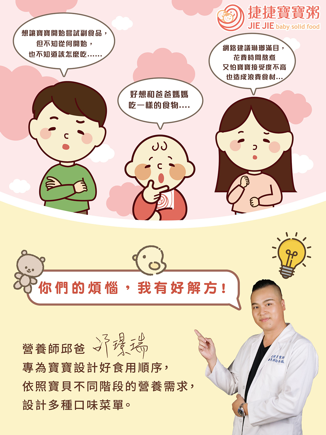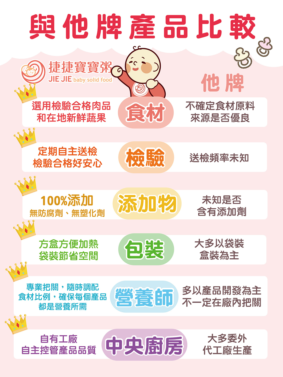 捷捷寶寶粥全系列餐點保證不添加防腐劑與任何人工食品添加物,請家長安心選購!
