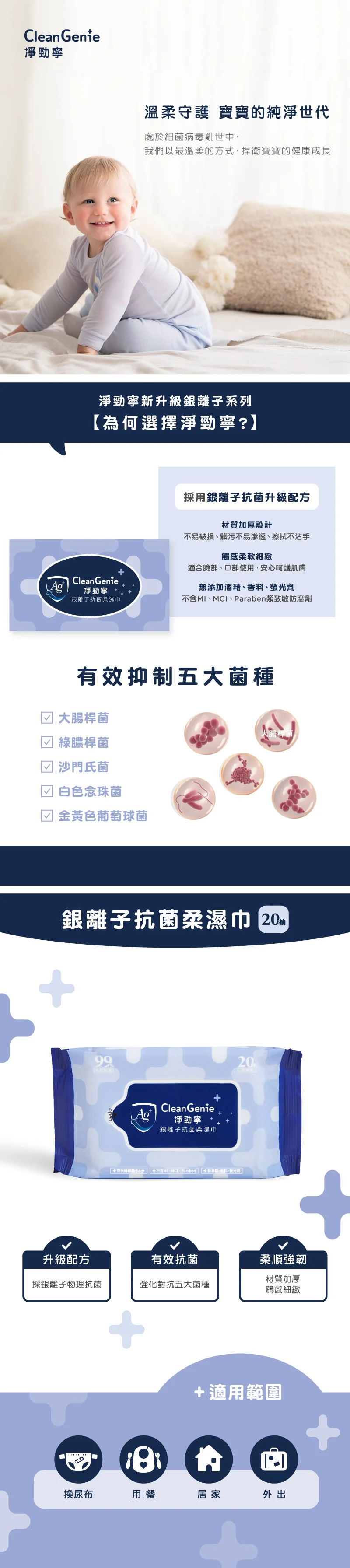 淨勁寧 銀離子抗菌柔濕巾 20抽 -多款可選