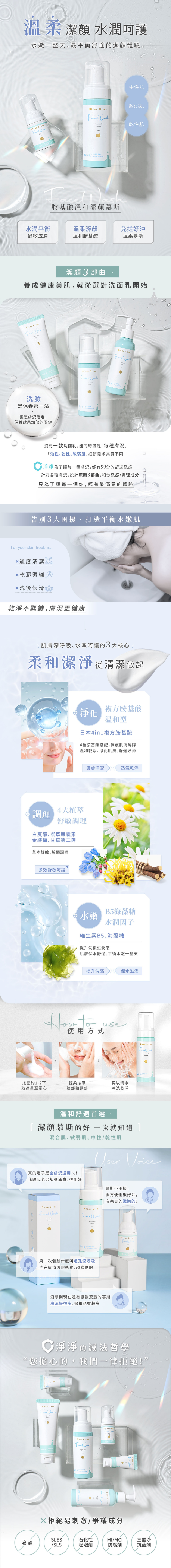 • 慕斯質地溫和乾淨、淨化肌膚、舒適好沖洗
