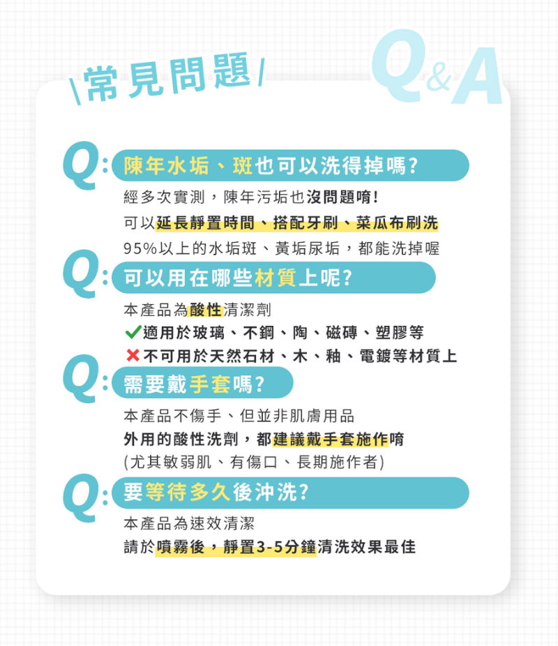 - 水垢、鏽斑、皂垢、尿垢,一次輕鬆搞定!