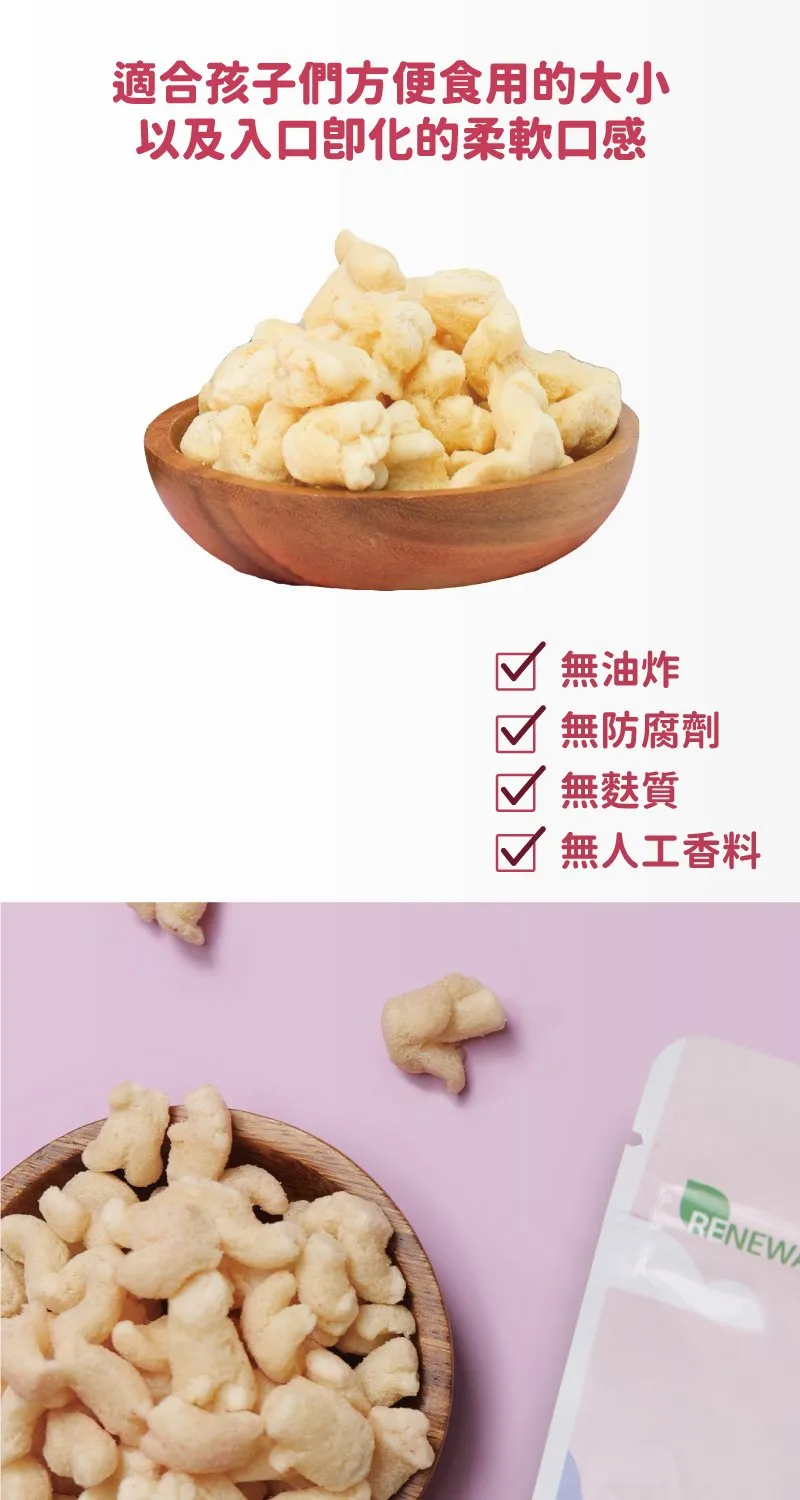成分:玉米粉(玉米100%)、葵花籽油、蔗糖5.61%、冷凍乾燥蘋果粉、碳酸鈣、精製鹽、維生素B1