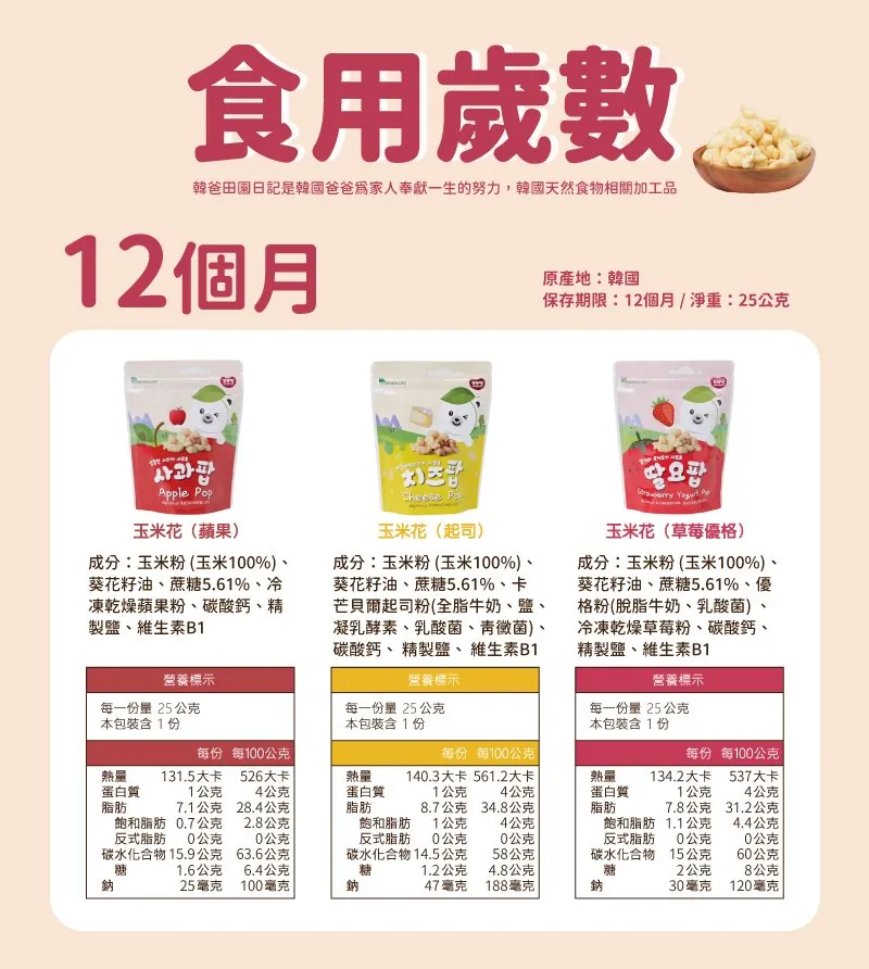 韓國 韓爸田園日記 玉米花系列 -多款可選