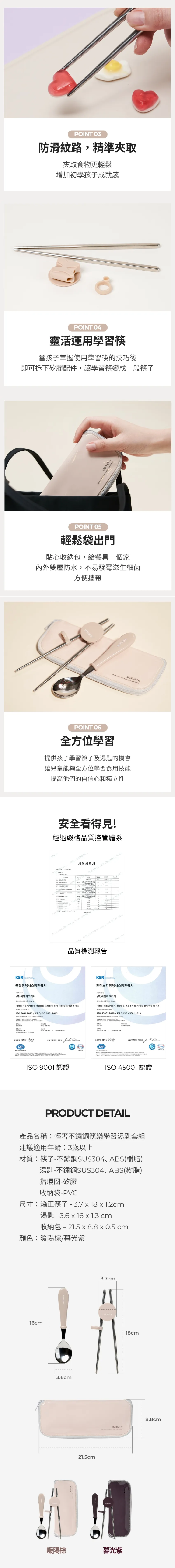 品名:輕奢不鏽鋼筷樂學習湯匙套組 3Y+
