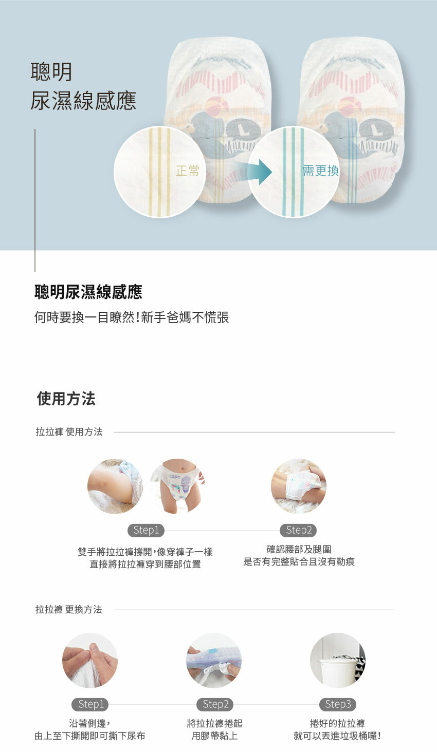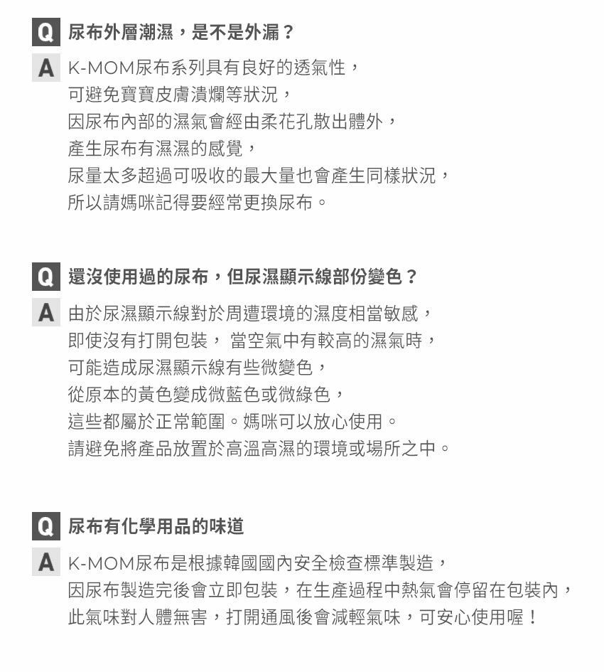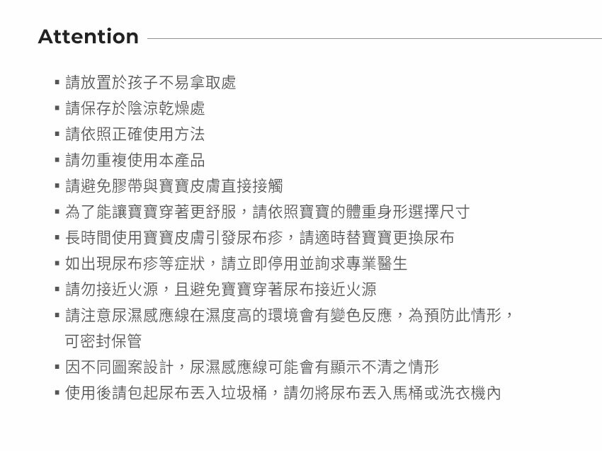 10. 請注意尿濕感應線在溼度高的環境會有變色反應,為預防此情形,可密封保管