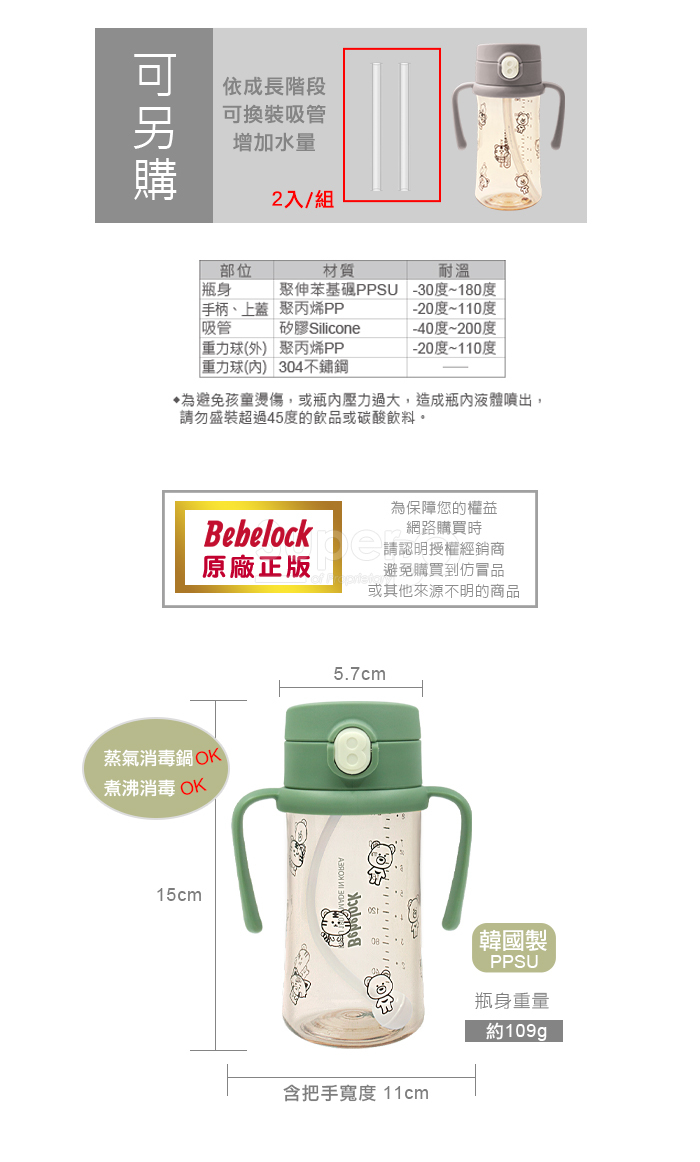7. 因本身PPSU材質特性,生產過程中可能會產生無法避免的氣泡、斑點、輕微刮痕,此為正常現象,非產品瑕疵,不影響正常使用。