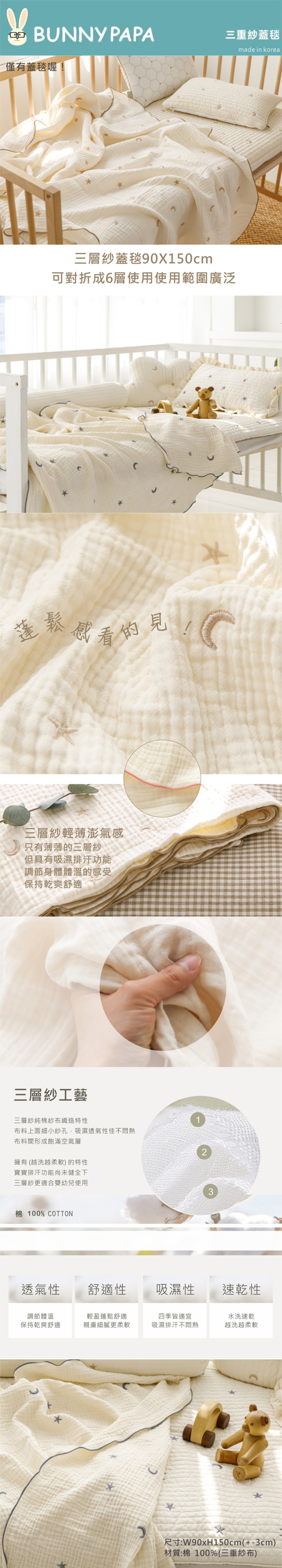 韓國 BUNNY PAPA 三重紗蓋毯/棉被