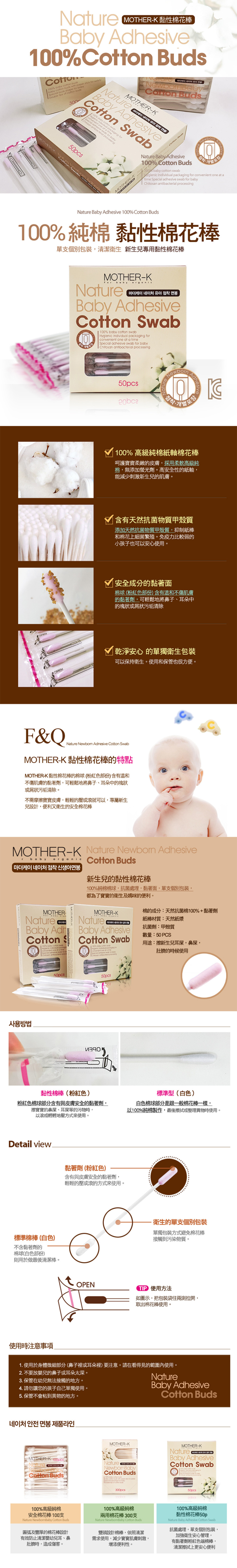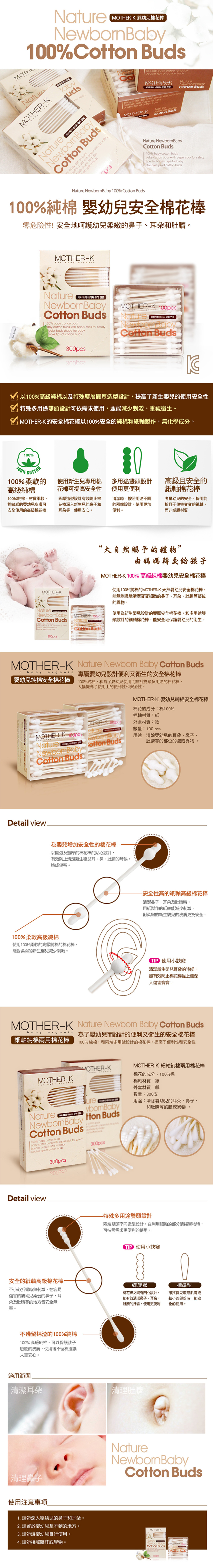-以圓弧及豐厚棉花棒的貼心設計,提高新生嬰兒的使用安全性
