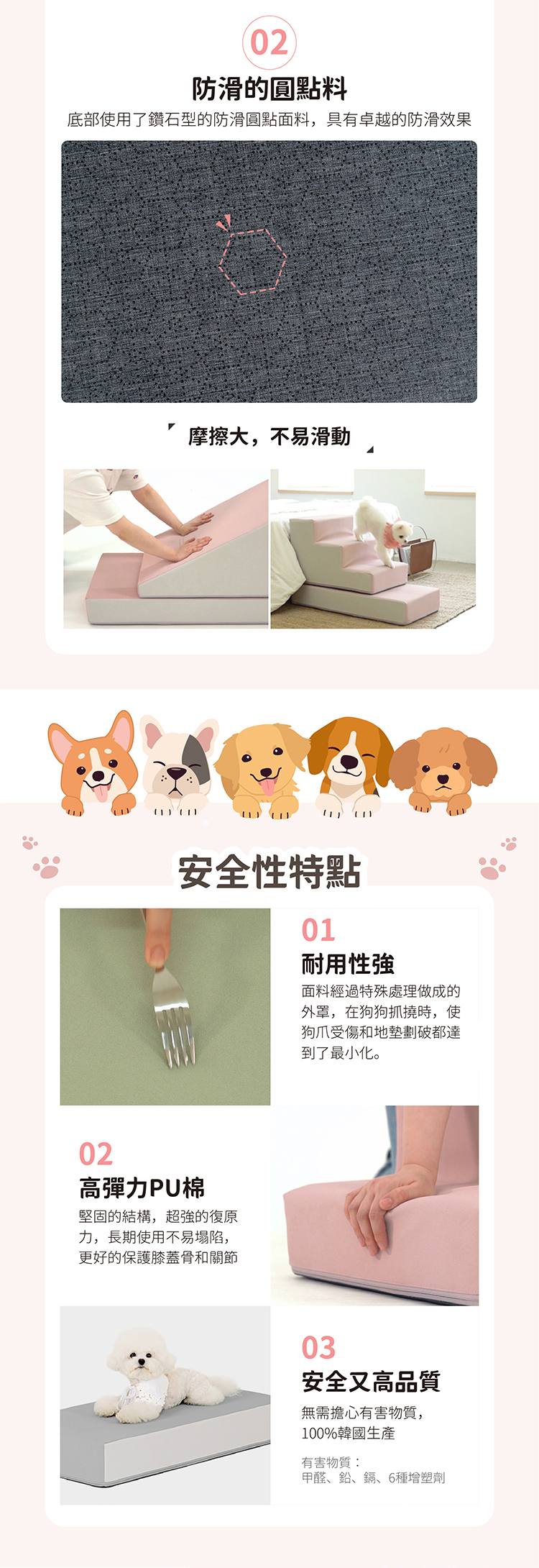 使用本產品也可降低毛寶貝對高度的恐懼,本品牌寵物系列所有原料皆為韓國設計生產。
