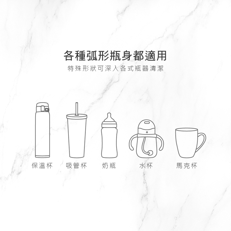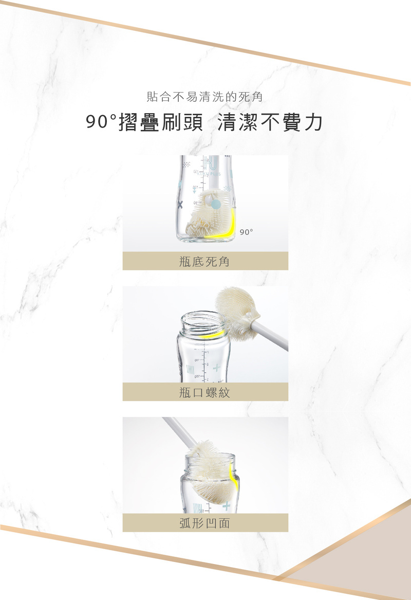 • 奶嘴刷頭設計可90°彎曲