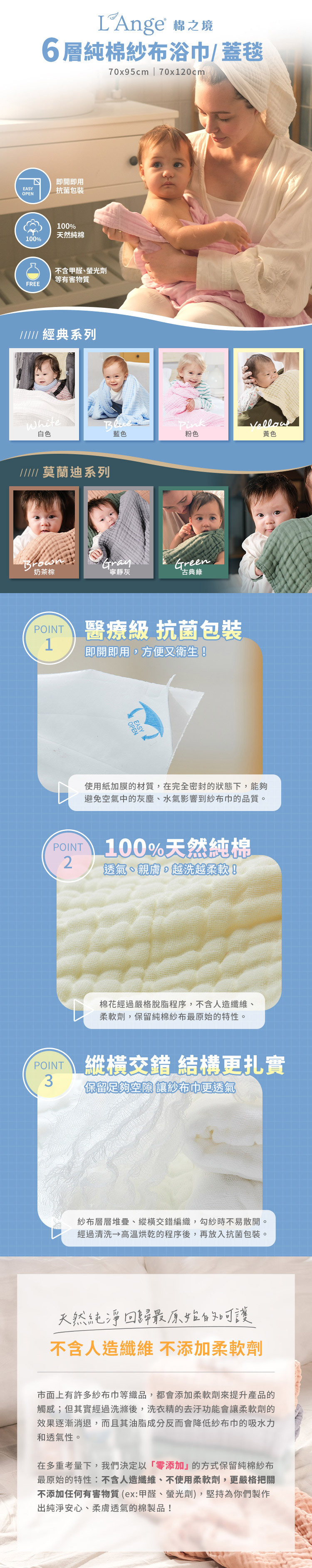 L'Ange 棉之境 6層純棉紗布浴巾/蓋毯 70x95cm / 70×120cm -多款可選