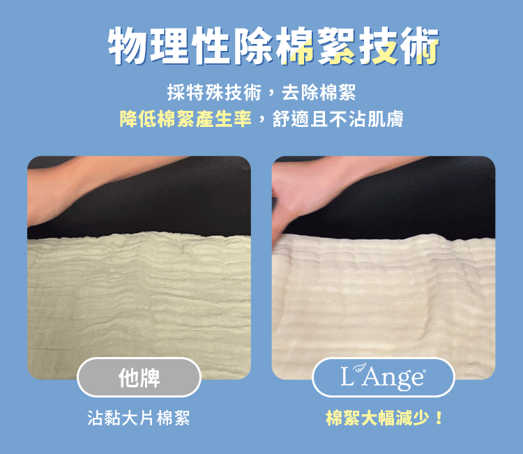 嚴選棉花及脫脂程序,縱橫交錯編織而成,透氣、快乾且吸水性極佳!可快速帶走多餘水分,日常使用性極高。