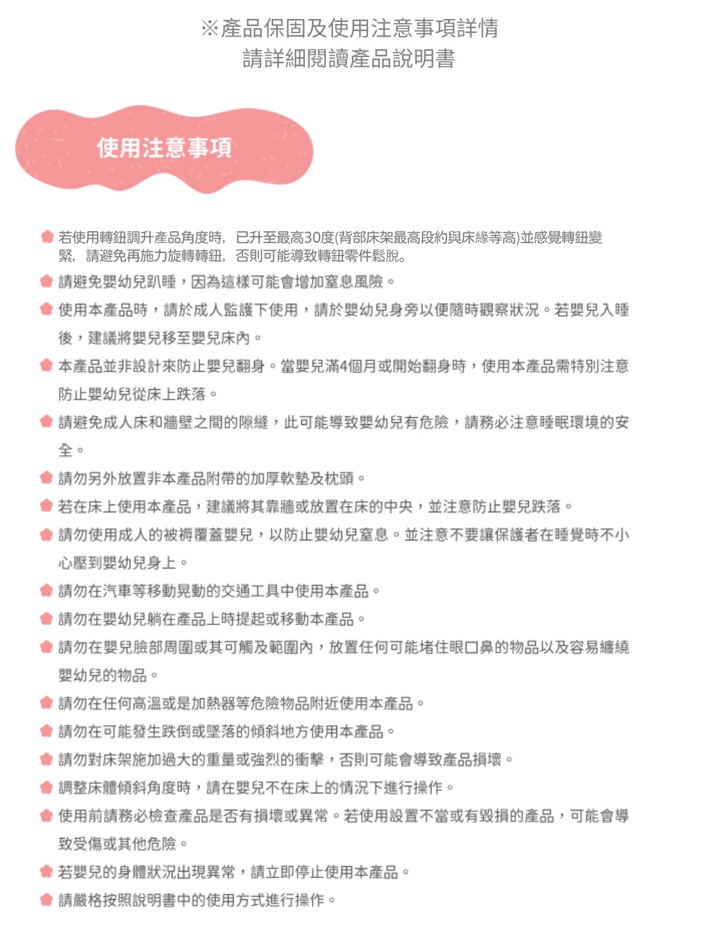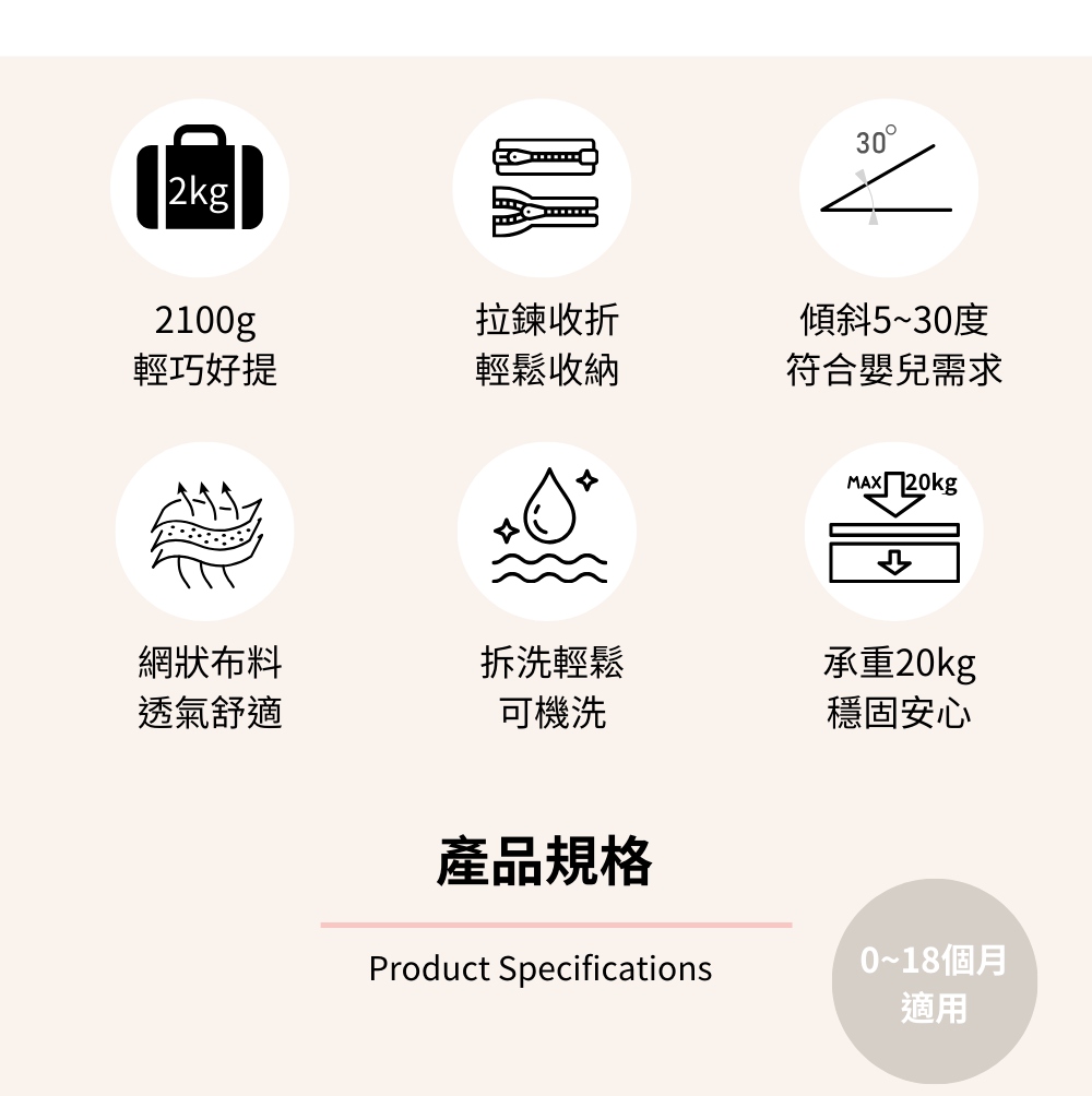 ✔️ 可調傾斜角度設計:5°~30°傾斜角度可輕鬆調整,預防吐奶、幫助排氣。