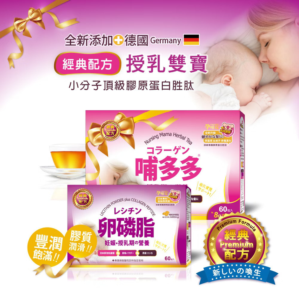 孕哺兒經典授乳雙寶卵磷脂,獨家採用德國專利小分子膠原蛋白胜肽