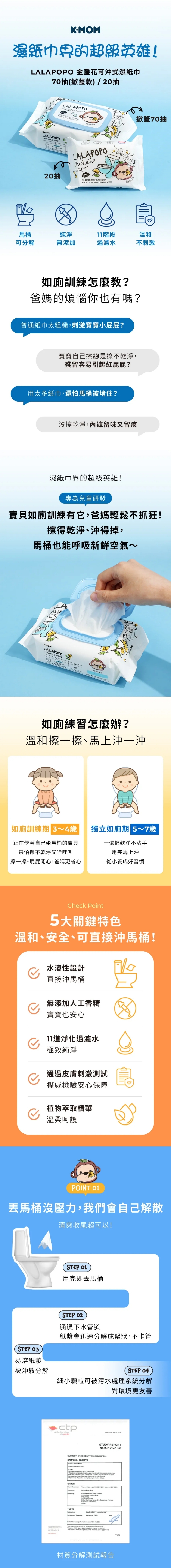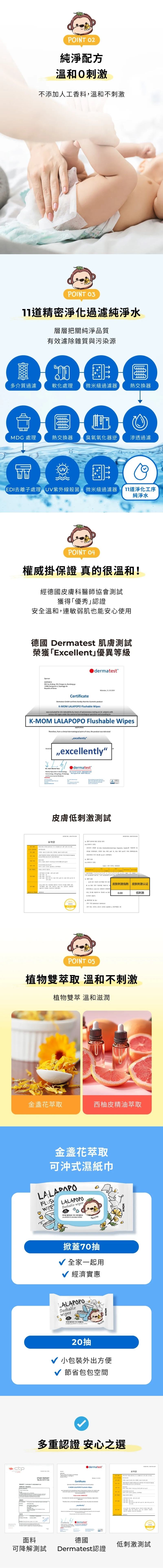 品名:LALAPOPO 金盞花可沖式濕紙巾