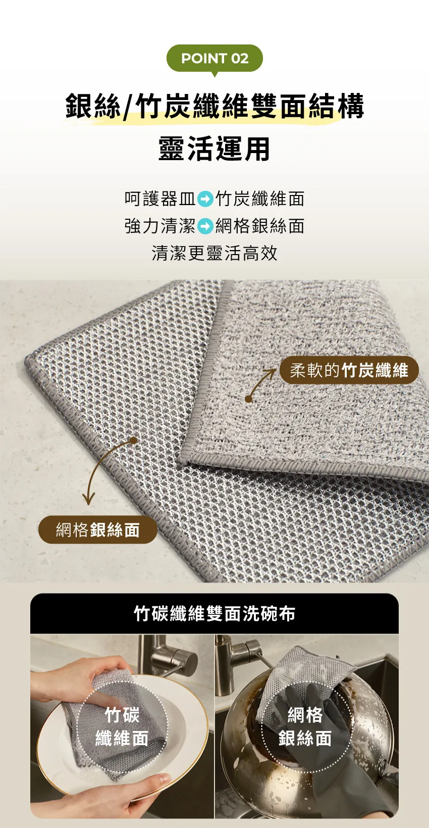 -銀絲×竹炭纖維絨布 不沾鍋也適用