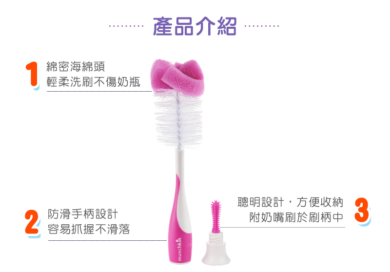 -海綿刷頭可刷洗奶瓶的任何角落,刷毛柔軟、耐用,不會刮傷奶瓶。