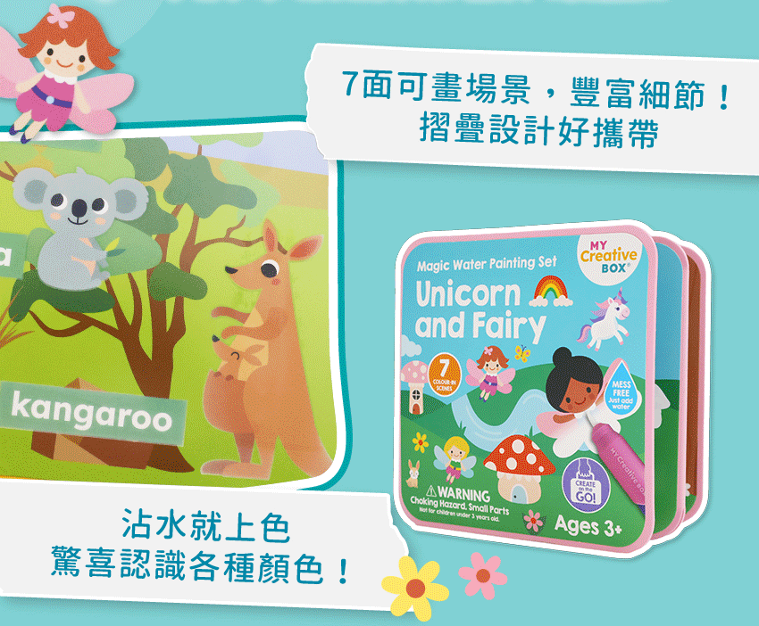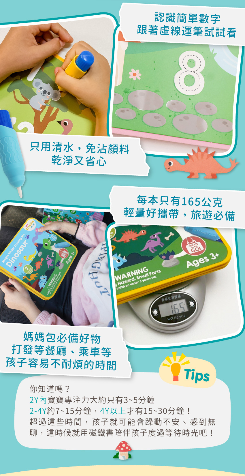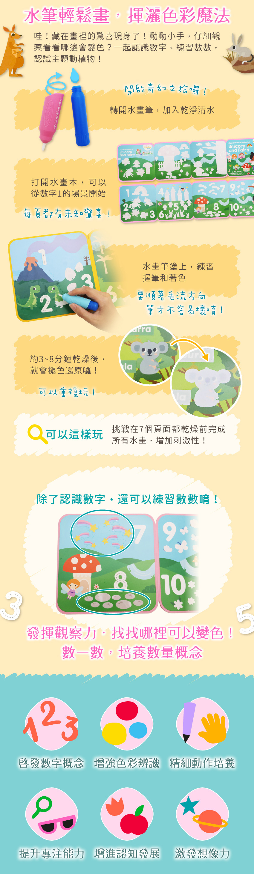 - 沾水即畫,顏色自動顯現,無需顏料,不怕髒手