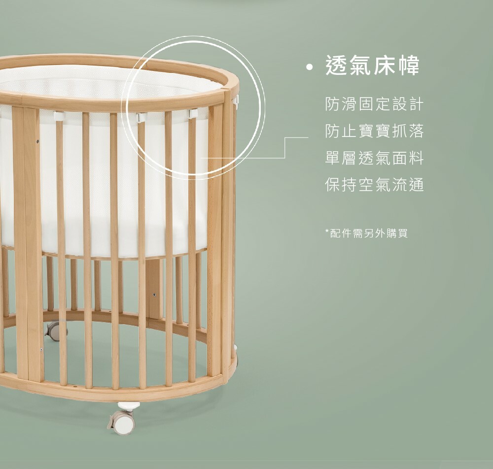 ‧ 床幃可確保寶寶雙臂及雙腿安全置於嬰兒床內