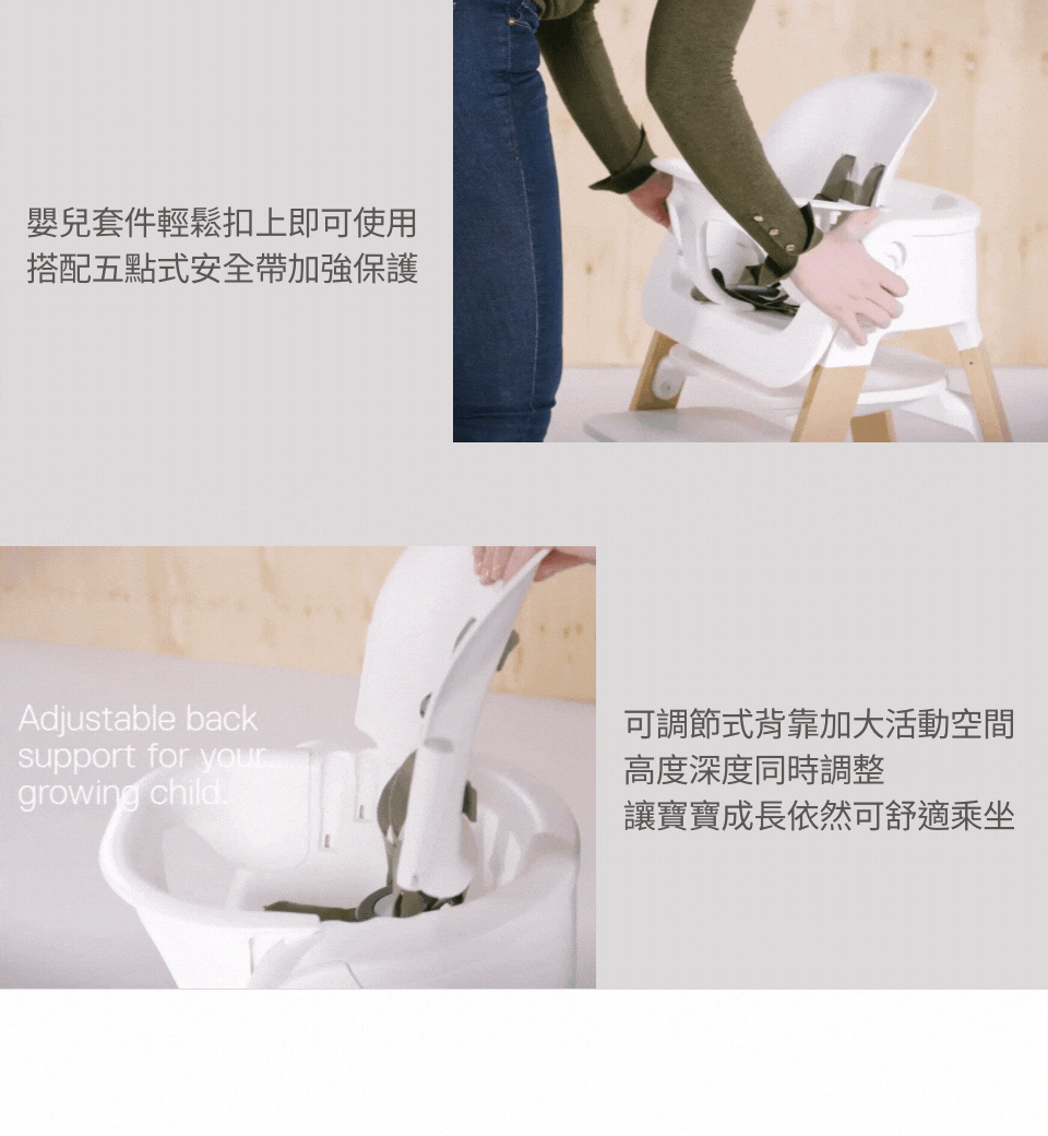 -背部高度及深度可同時調整,讓成長中的寶寶擁有更多空間