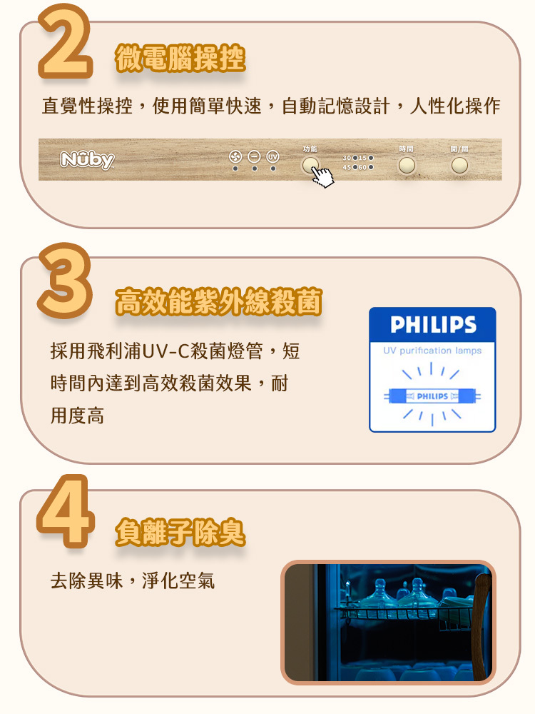 高效能紫外線殺菌:採用飛利浦UV-C殺菌燈管,耐用度高