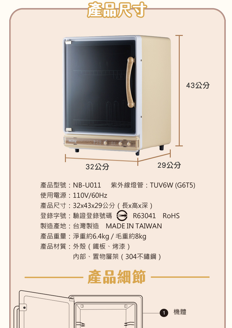 材質:外殼(鐵板/烤漆),內部、置物層架(304不鏽鋼)