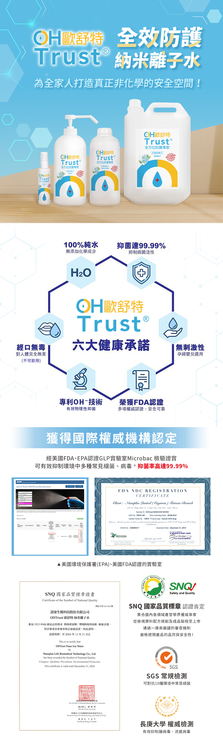 通過SNQ國家級產品認證,以及長庚大學新興病毒感染研究中心