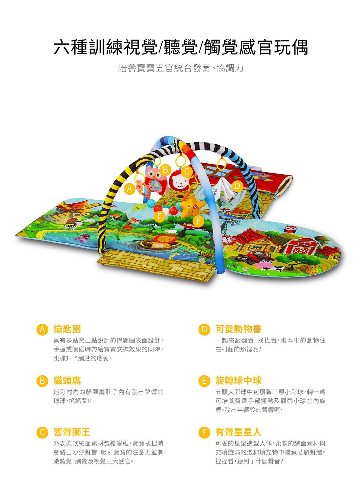 -六種訓練視覺/聽覺/觸覺感官玩偶,培養寶寶五官統合發育、協調力