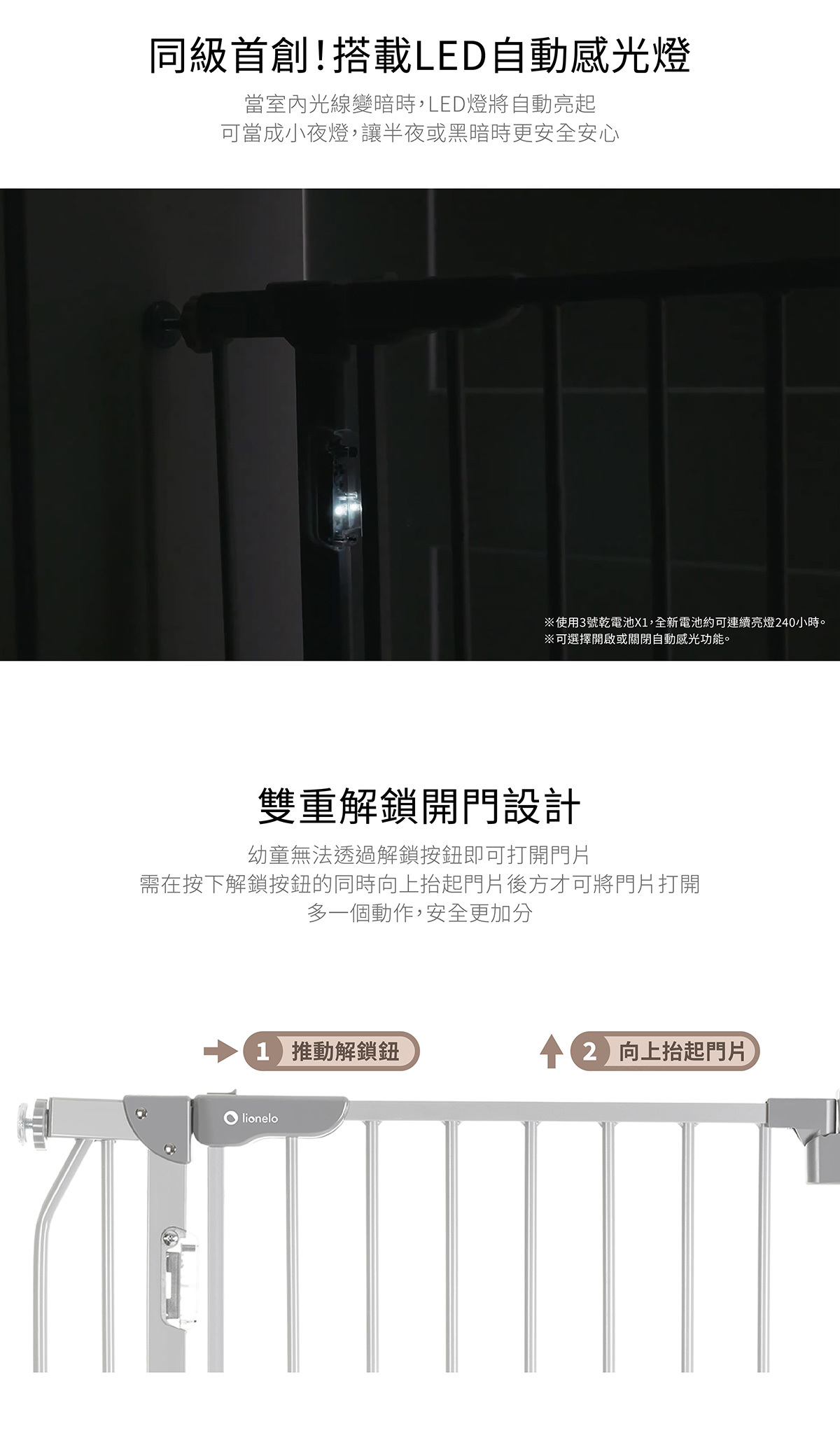 -雙重解鎖開門設計,避免幼童自行開啟