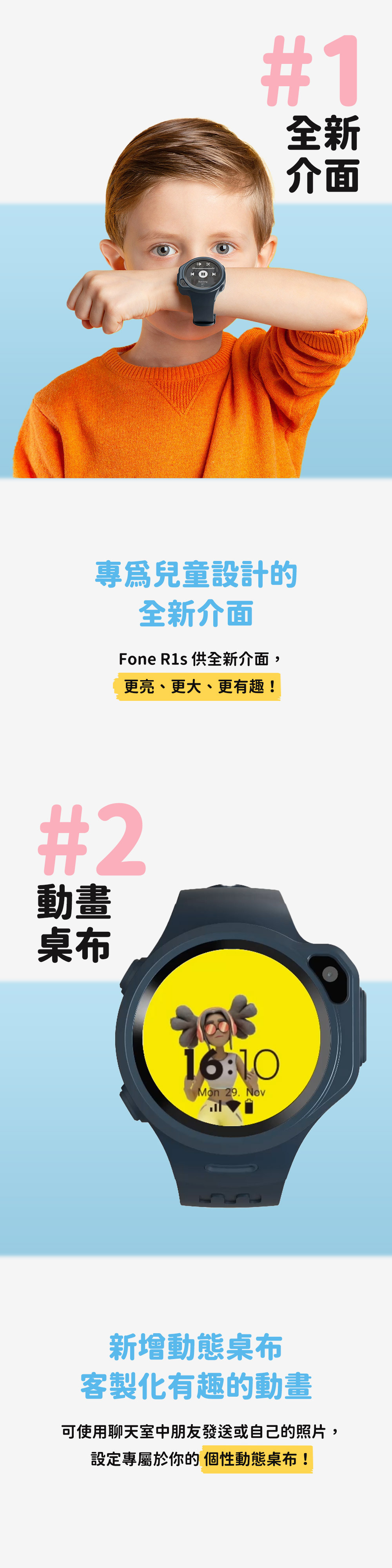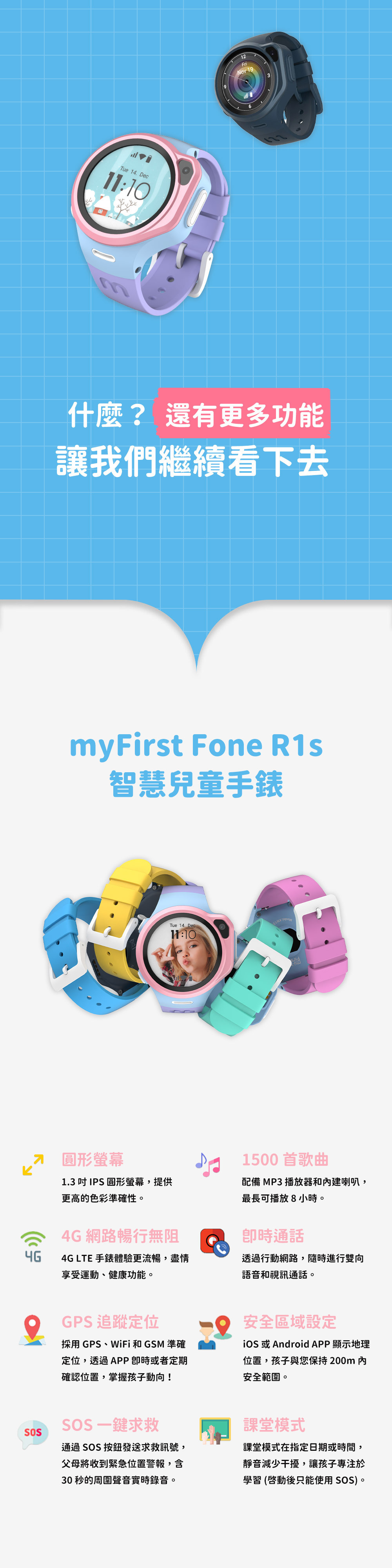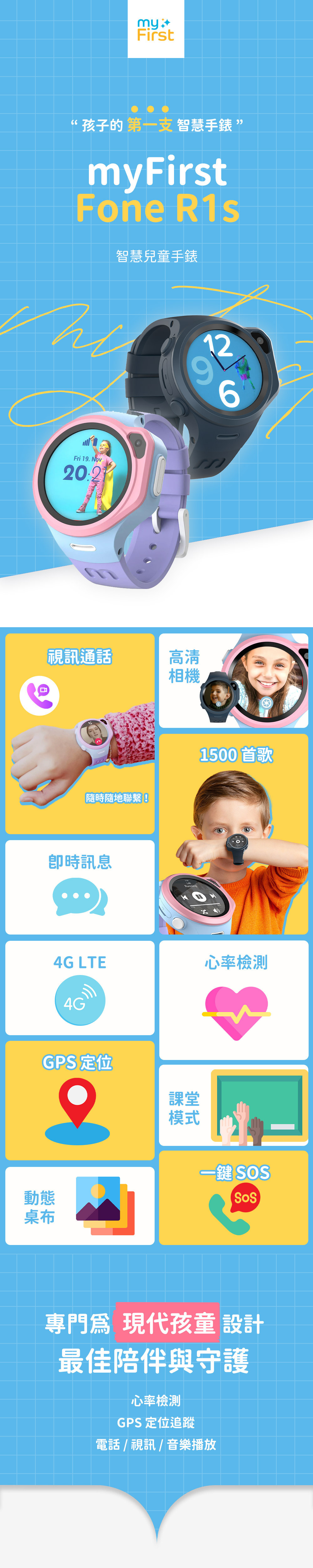 品名:myFirst Fone R1s 4G 智慧兒童手錶 (此型號僅在亞洲、歐洲和中東地區兼容)