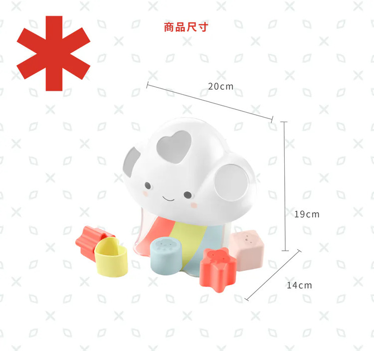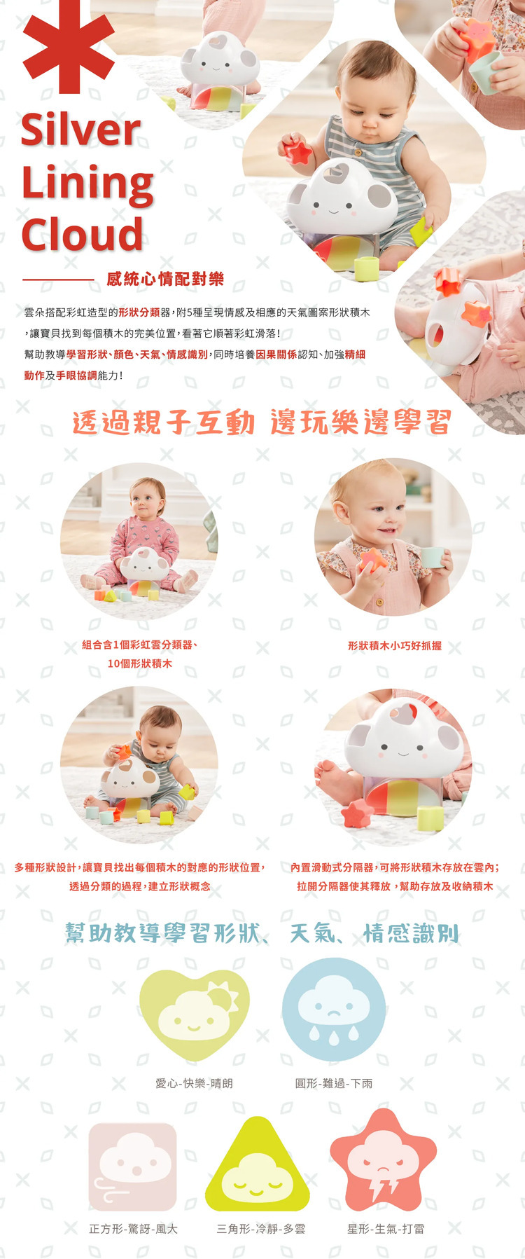 -雲朵內置滑動式分隔器,可將形狀積木存放在雲內;拉開分隔器使其釋放