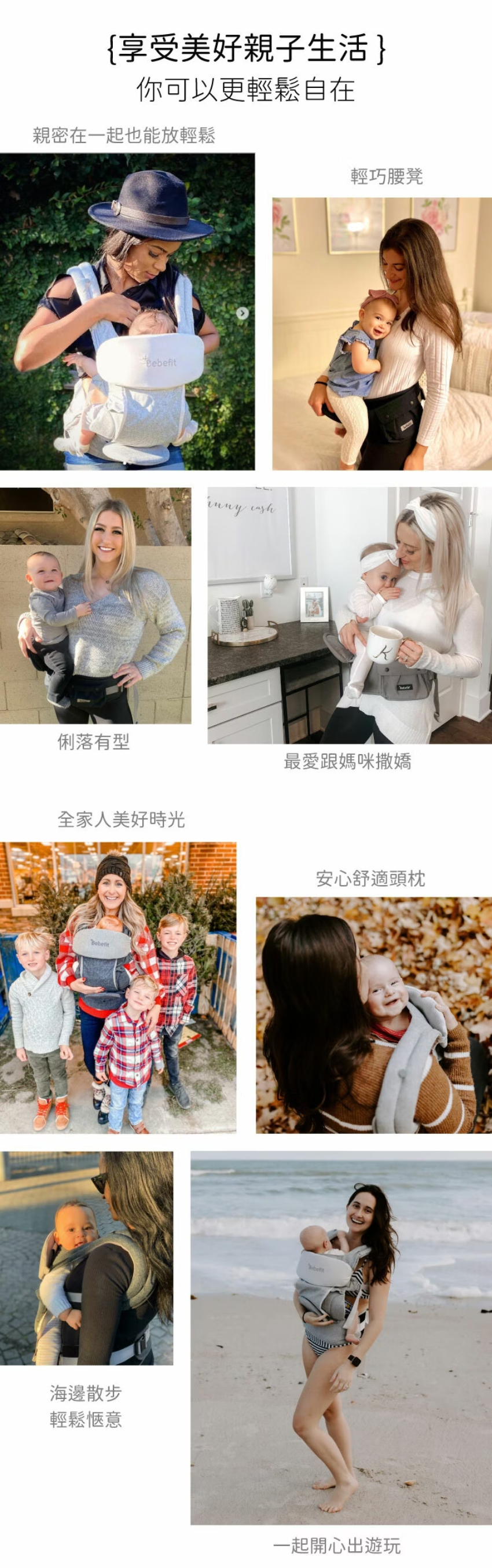 同樣為人父母的 Bebefit 團隊,深知育兒生活的辛勞,尤其在現代快速與高壓力的生活中,揹孩子時常常必須同時處理各種事務,