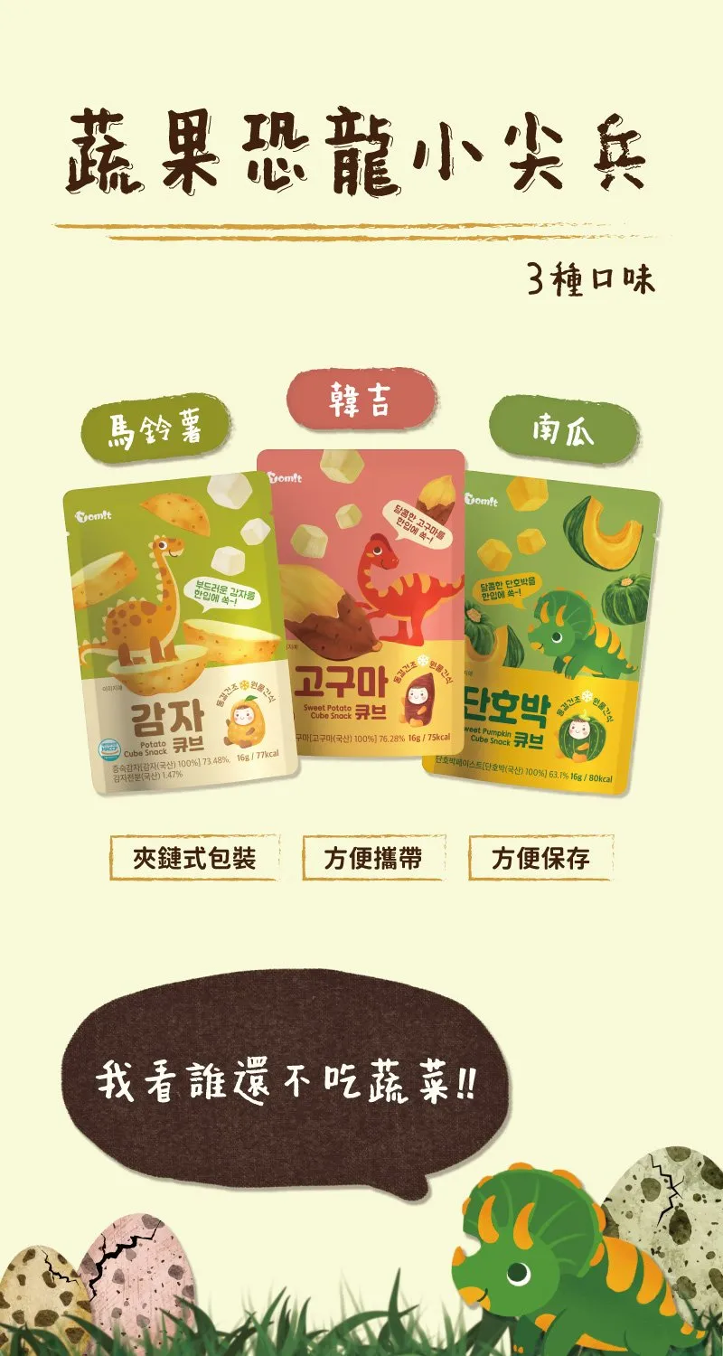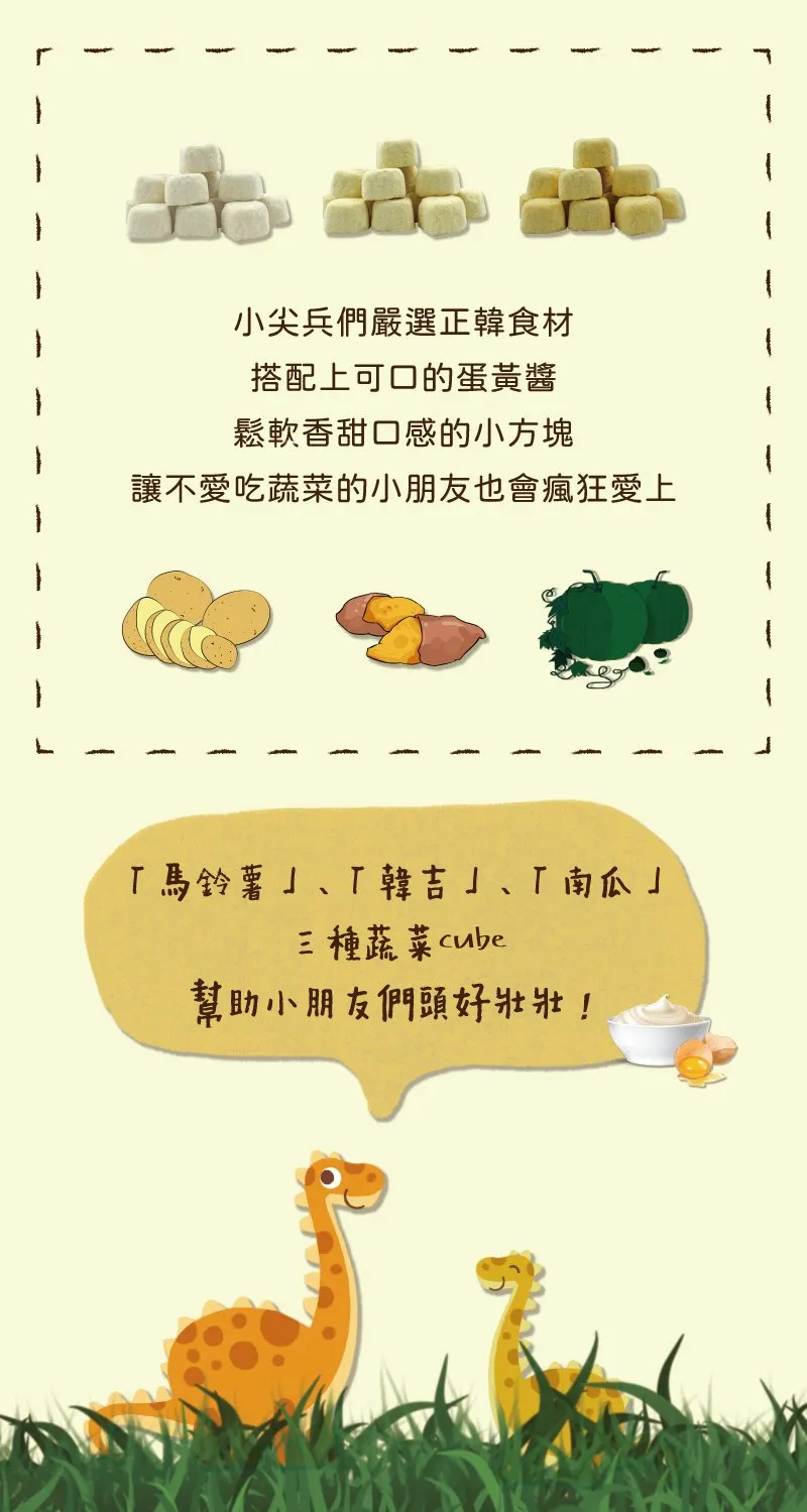 「馬鈴薯」、「韓吉」、「南瓜」三種蔬菜cube 幫助小朋友們頭好壯壯!