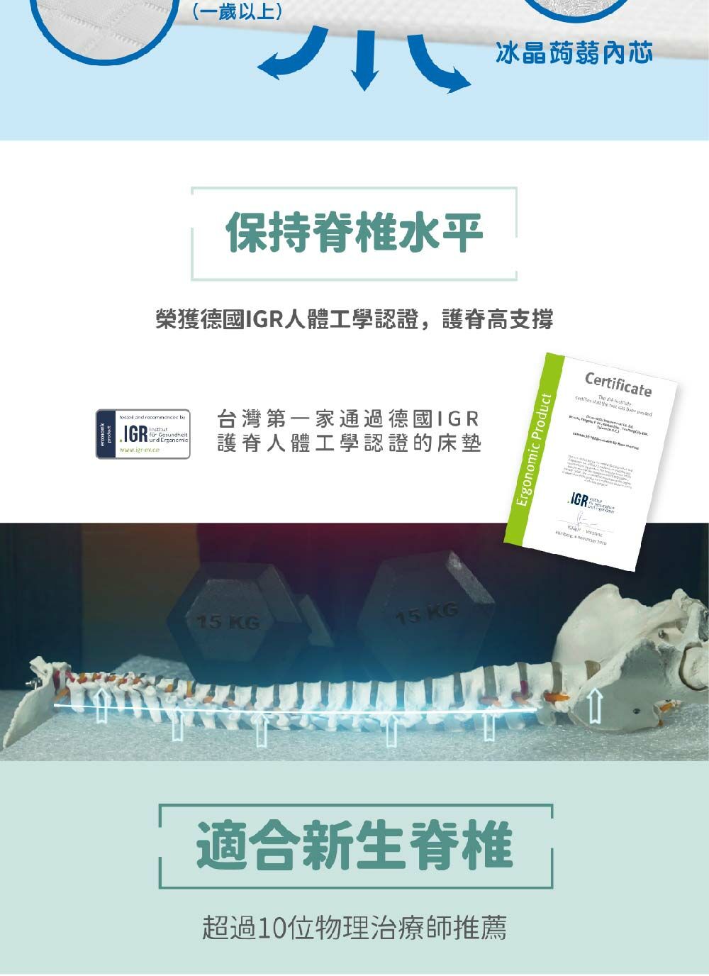 -台灣第一個榮獲德國IGR脊椎健康人體工學安全認證的床墊