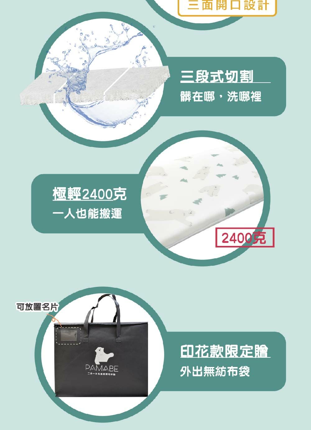 9. 《PAMABE二合一水洗透氣嬰兒床墊》專為寶寶睡眠設計的產品,用於其他用途可能造成危險。