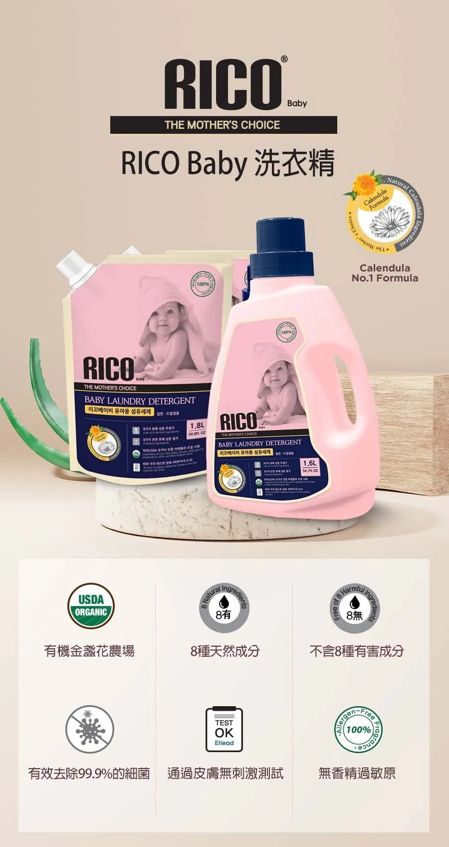 韓國 RICO baby 金盞花有機天然洗衣精 1600ml 罐裝