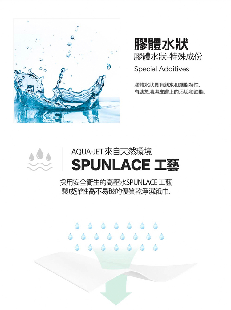-膠體水狀特殊成分,具有親水和親脂特性,有助於清潔皮膚上的污垢和油脂