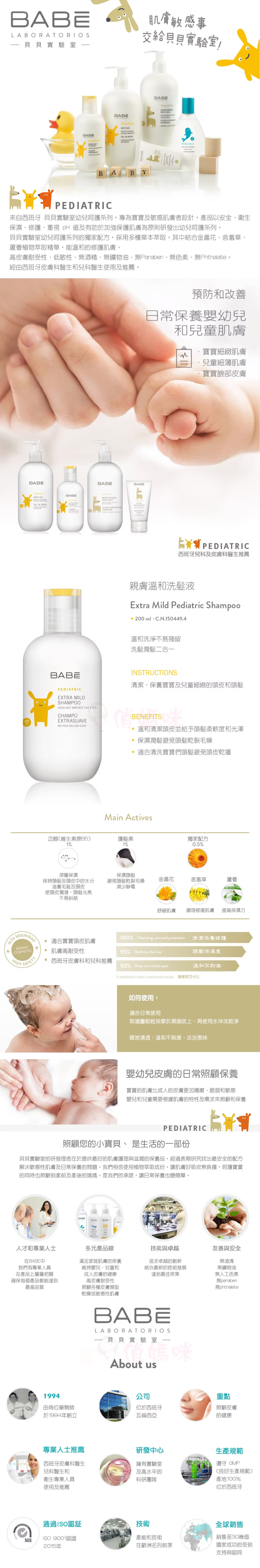 西班牙 BABE 貝貝實驗室 親膚溫和洗髮液 200ml