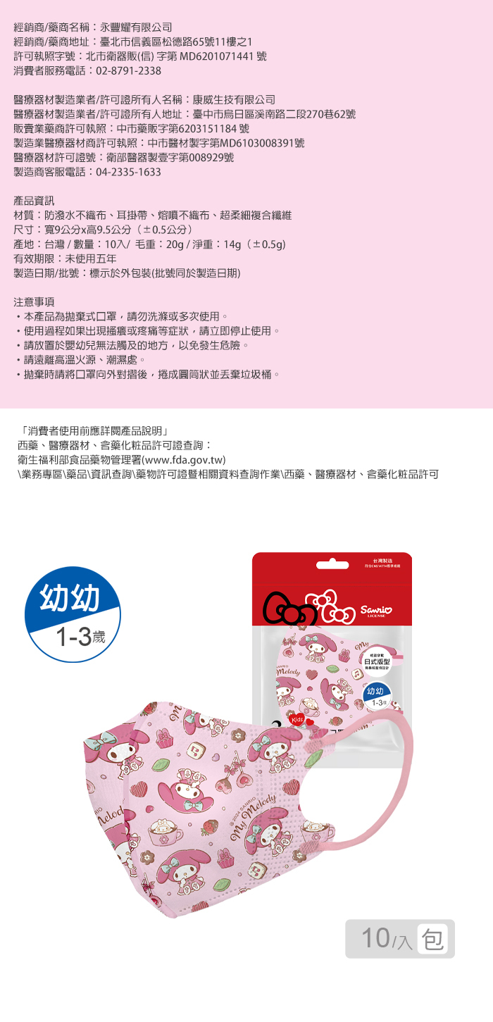3. 幼兒請在成人看護下配戴,並隨時保持呼吸順暢防止窒息