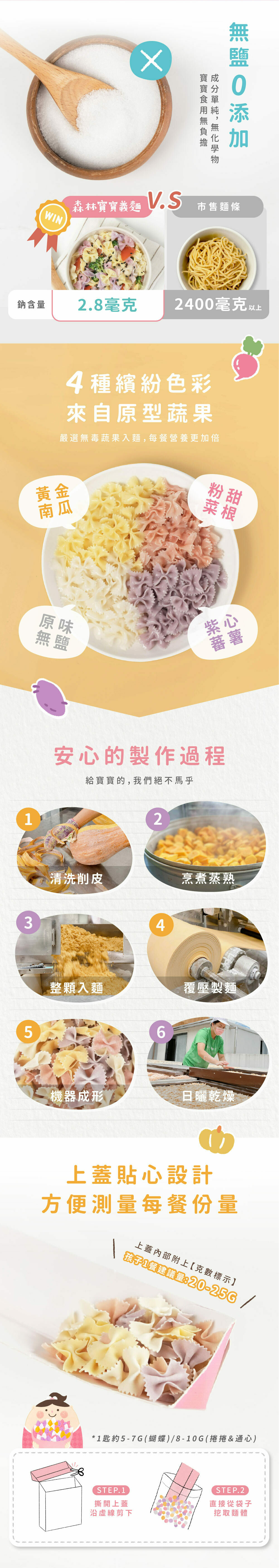 我們的麵麵都是無鹽、無化學添加,讓寶寶可以安心食用!