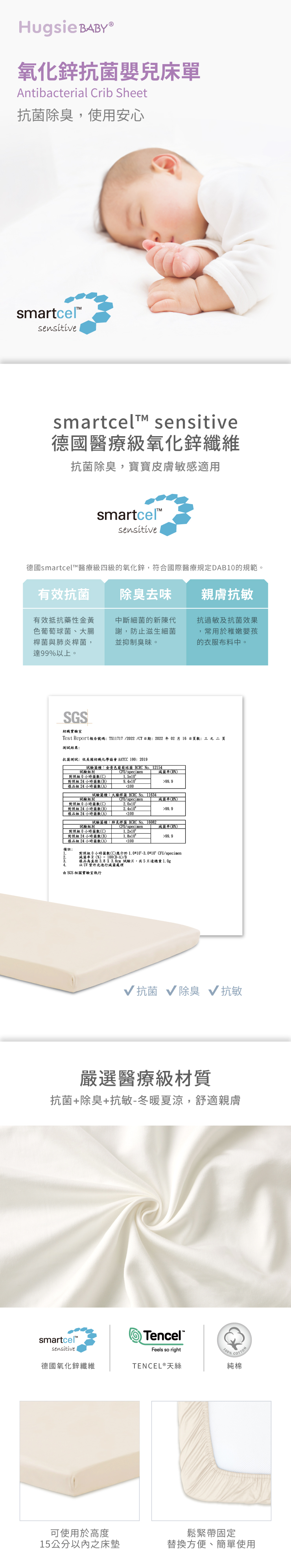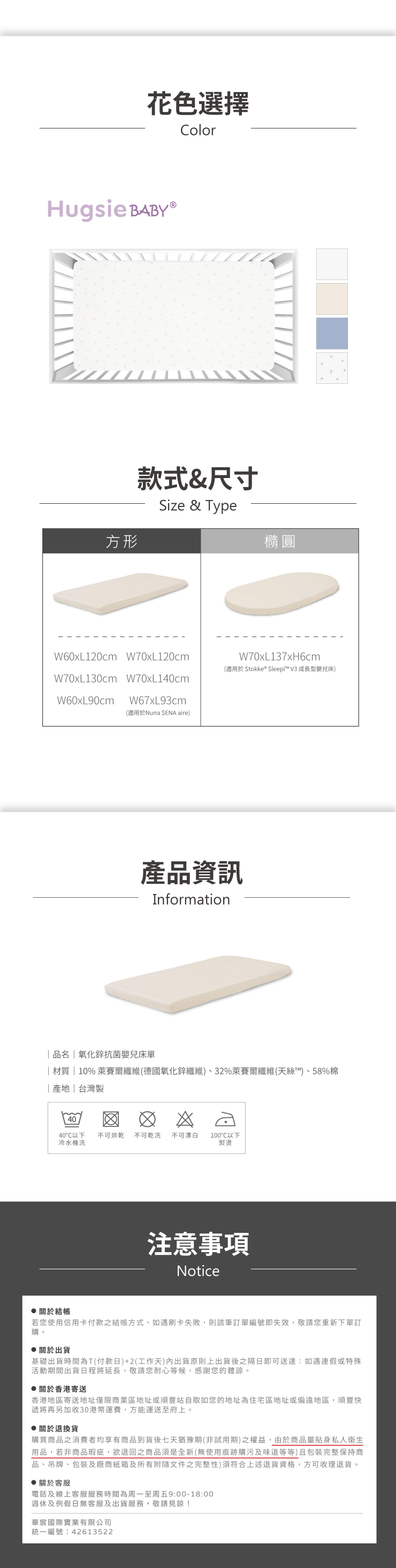 Hugsie 好喜 德國氧化鋅抗菌嬰兒床單 嬰兒床包 67×93cm (Nuna Sena aire專用)