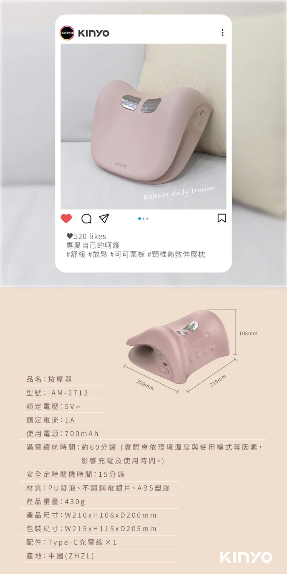 -C型曲線,完美貼合頸部