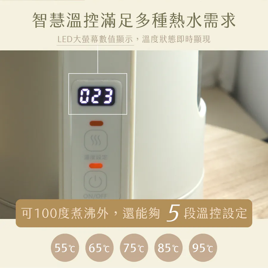 5段溫控設定:55℃ / 65℃ / 75℃ / 85℃ / 95℃